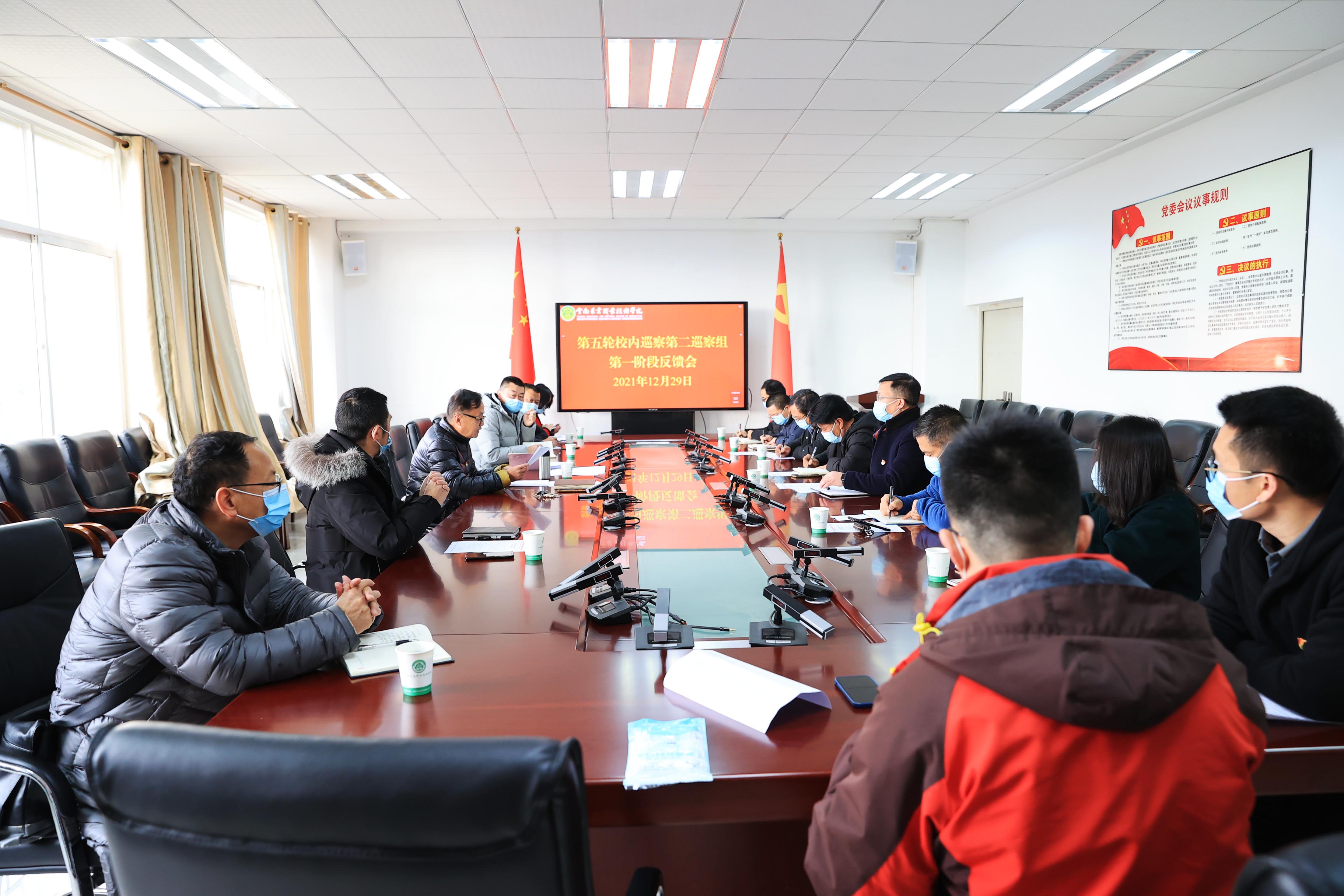 2021年12月29日,按照学院党委的安排部署,召开第五轮校内巡察反馈会。会议由巡察工作领导小组组长、党委副书记、院长文俊同志主持。第一巡察组、第二巡察组分别向被巡察党组织反馈巡察意见。