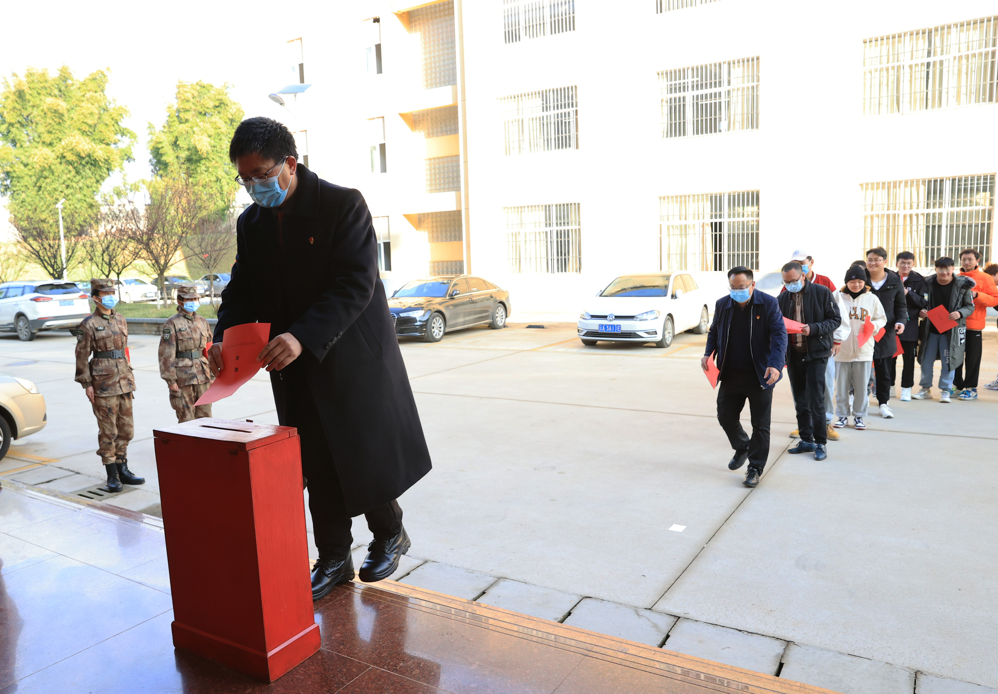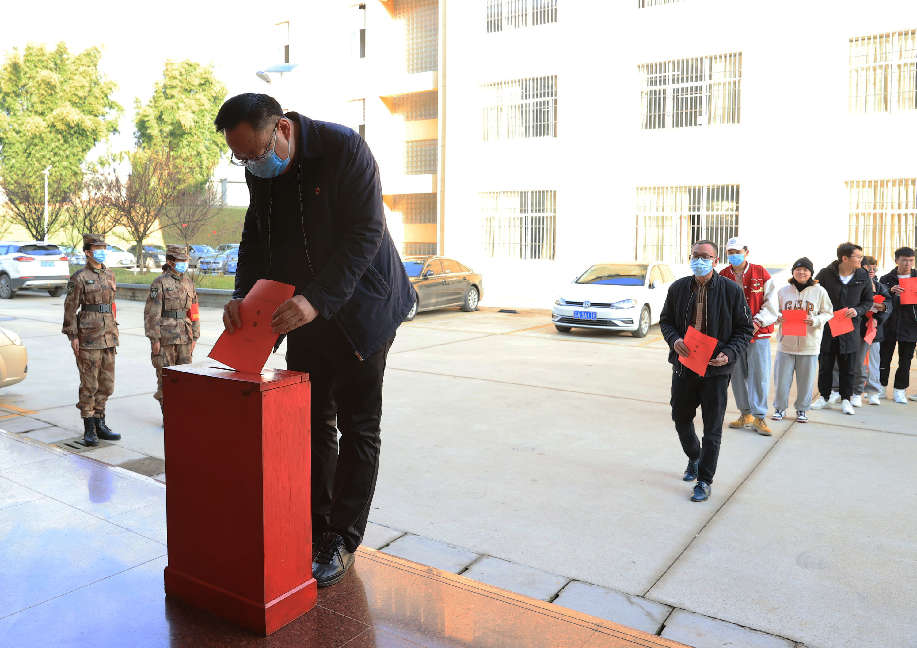 文俊院长率领本选区的选民投票