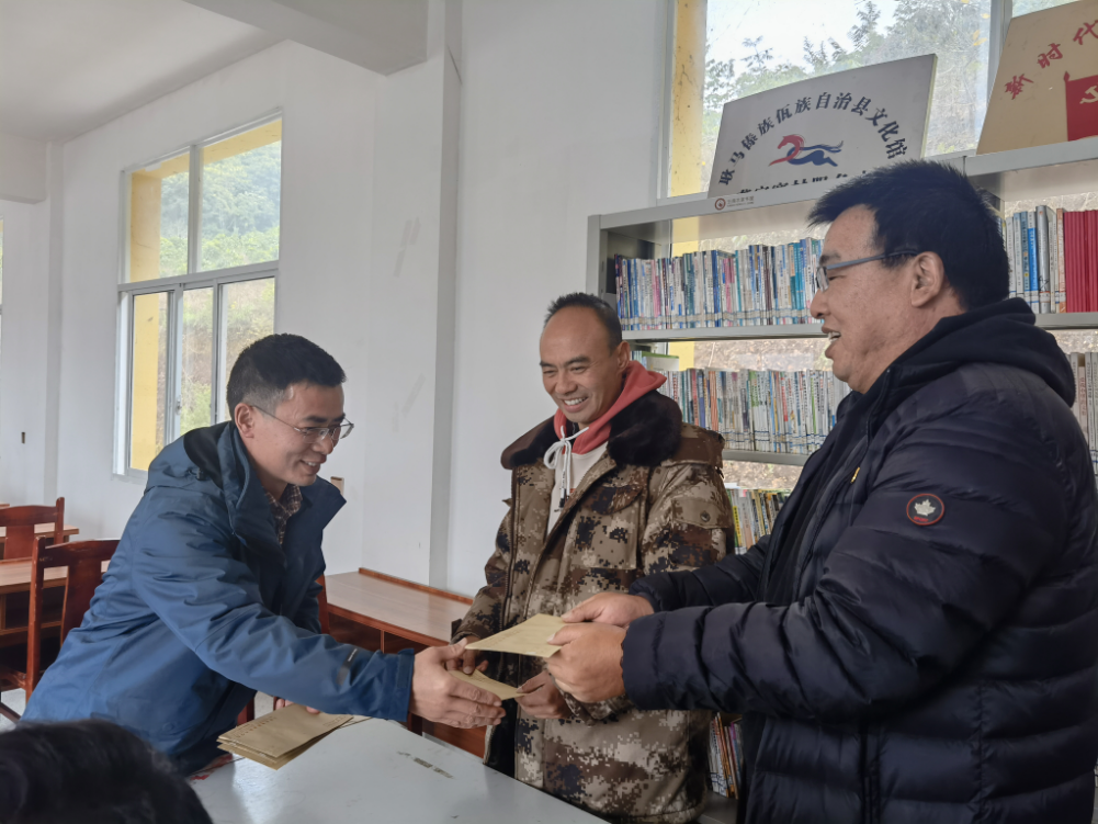 最后,伍学龙副书记向五名驻村工作队成员转达了学院党委对队员的问候和祝福,并发放了春节慰问金。驻村工作队表示一定不负党和人民的重托,按照学院党委的安排和部署,切实落实好各项乡村振兴帮扶政策,做好2022年度驻村帮扶工作。(驻村工作队供稿/文、图:高山/审核:杨筱莹/责任编辑:叶妍琳)