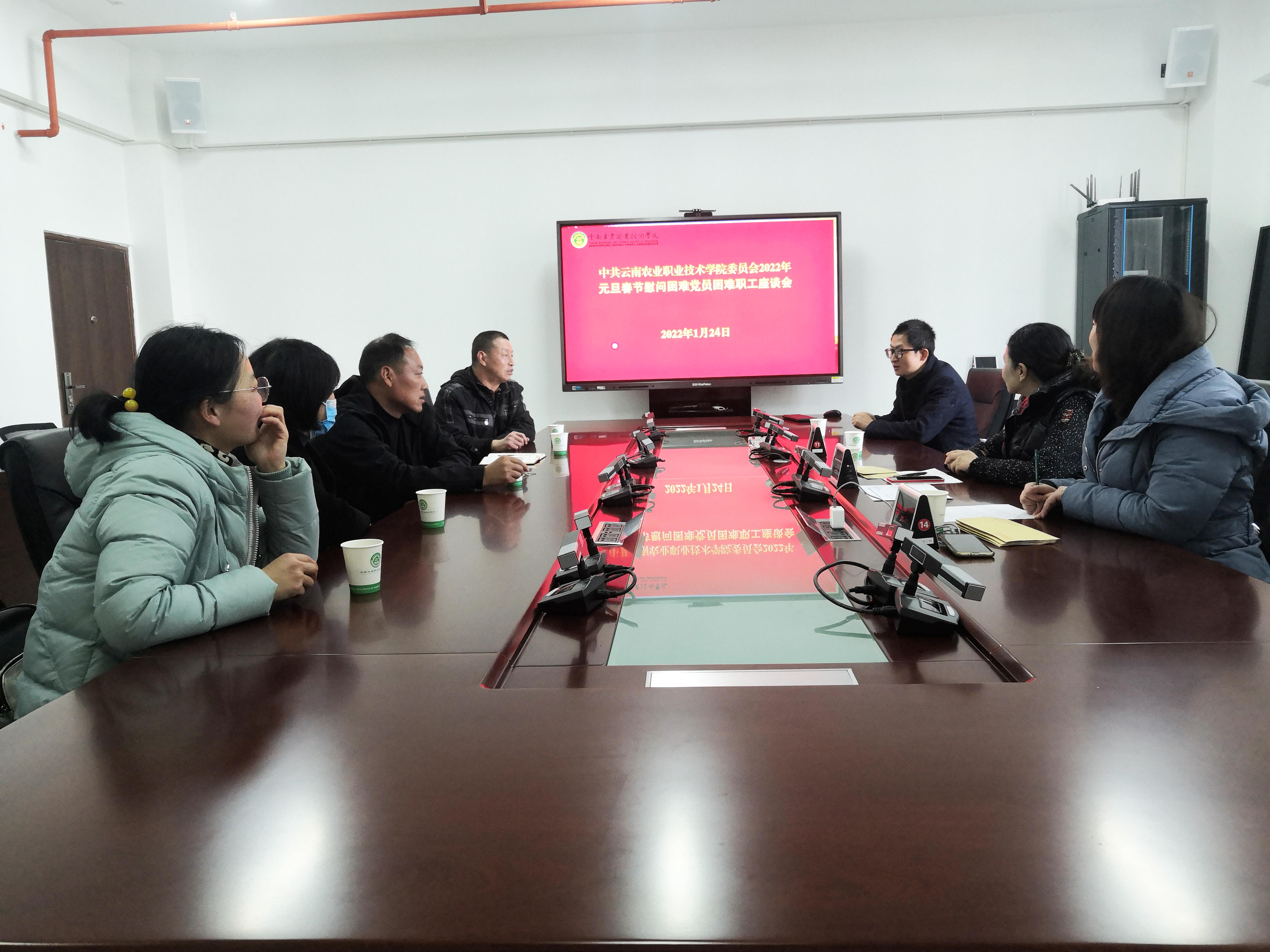 1月24日,学院在茭菱校区办公楼826会议室召开困难职工、困难党员慰问座谈会。此次慰问的职工是组织部、工会提前摸底,深入了解职工困难的实情,对职工本人患大病、家属患大病、孩子读书费用高等原因导致家庭经济困难或精神压力过大的职工进行慰问。到会教工纷纷发表感言,感谢学院在困难时刻给予关怀、帮助,进一步增强了战胜病魔和经济困难的决心!