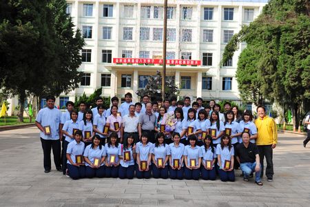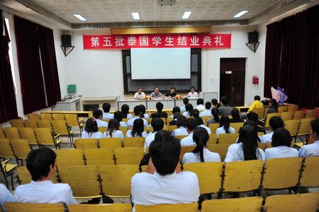 通知中心何明东副院长首先向泰国留学师生表示热烈的祝贺,祝贺他们在短短五个月的留学时光中,圆满顺利地完成了学业,即将离开学院返回泰国。何副院长总结了泰国留学师生在我院丰富多彩的学习生活,他们认真完成了《植物学》《动物学》《汉语语言》《计算机》《体育》《云南风情》《中国食物烹调》《中国书法》《中国音乐欣赏》等课程的学习,参加了多门课程的实习实训,参观游览了昆明市周边以及大理、丽江等著名风景名胜;特别值得赞扬的是短短五个月就初步掌握了汉语的应用。祝愿同学们回国后步步高升,前途光明!同时欢迎留学生常到中国回云南回学院学习交流,带上父母来云南度假旅游;祝同学们回国一帆风顺,平安愉快!