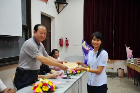 结业典礼在颁发结业证、奖金、礼品时达到高潮。何副院长,凌军主任、赵茜副处长依次向泰国留学师生颁发结业证书、奖金和礼品。同学们纷纷拿起相机留下这难忘的时刻,留下美好的瞬间!